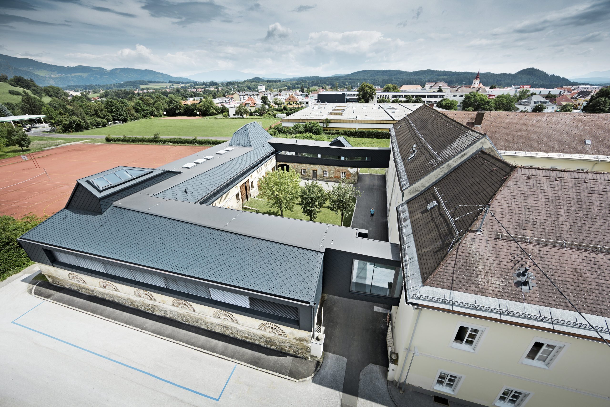 Die Umsetzung überzeugt auch ökonomisch: Durch die Nutzung vorhandener Strukturen konnte die neue Kubatur reduziert und Baugrubenkosten minimiert werden. Abbruch- und Entsorgungskosten beschränkten sich auf das Dach, dessen hochwertiges Altholz wiederverwendet wurde. Die Sanierung des Stadelgebäudes erfolgte in enger Abstimmung mit dem Bundesdenkmalamt überwiegend strukturerhaltend. Durch die Integration bestehender Erschließungen innen wie außen wurde Barrierefreiheit effizient umgesetzt, und die System-Leichtbauweise verkürzte die Bauzeit und reduzierte Beeinträchtigungen des laufenden Betriebs auf ein Minimum.