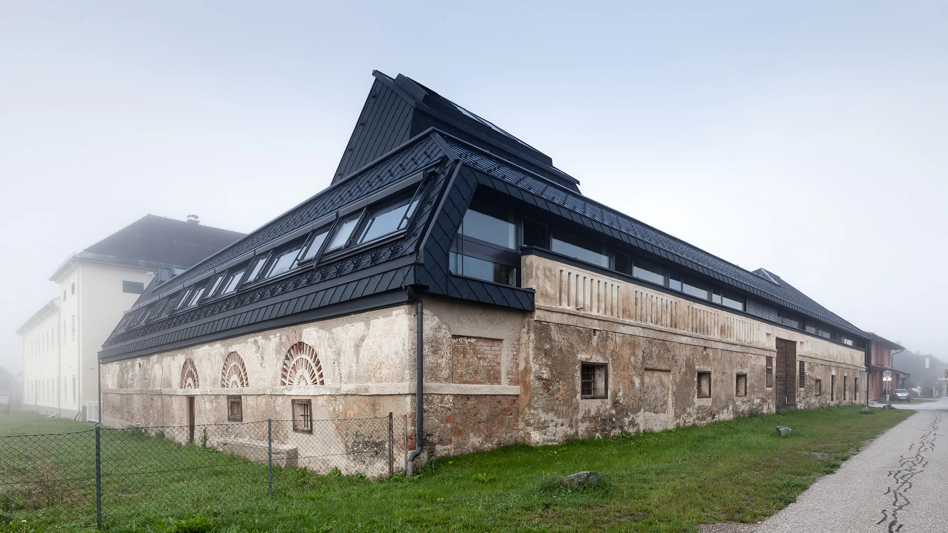 Die Erweiterung des historischen Ensembles tritt in einen sensiblen Dialog zwischen Alt und Neu, ohne die ursprüngliche Bauweise zu verändern. Geplant war eine Ergänzung um etwa ein Drittel der bestehenden Fläche sowie die Schaffung einer neuen Zugangszone im nördlichen Grundstücksbereich. Die ursprünglich vorgesehenen Stallungen sind integraler Bestandteil der städtebaulichen Ordnung und wurden daher erhalten, wodurch die charakteristische Höhenentwicklung und die räumliche Struktur des Ensembles bewahrt bleiben.
