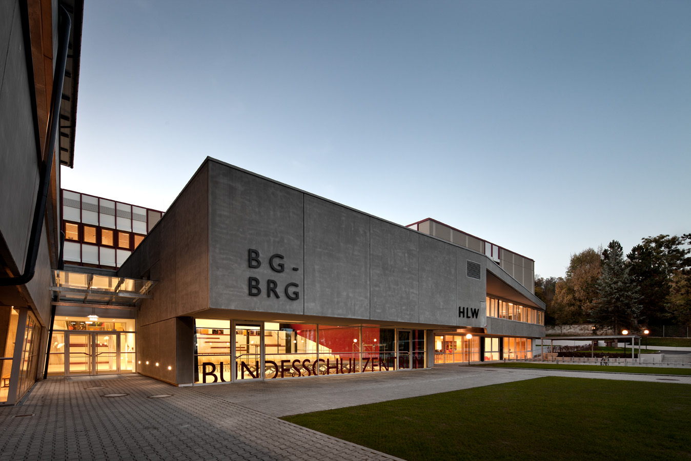 Das Bundesschulzentrum aus den 1980er Jahren, das ein Bundesrealgymnasium und eine HLW mit insgesamt etwa 1.100 SchülerInnen beherbergt, wurde im Rahmen der Sanierungsmaßnahmen auf den aktuellen Stand der Technik gebracht und durch Zubau- und Umstrukturierungen „fertiggebaut“. Im Bestandsbereich wurden Klassenräume und Sonderunterrichtszonen neu organisiert, Brandschutz- und Fluchtwegkonzepte optimiert und das Gebäude durchgängig barrierefrei zugänglich gemacht.