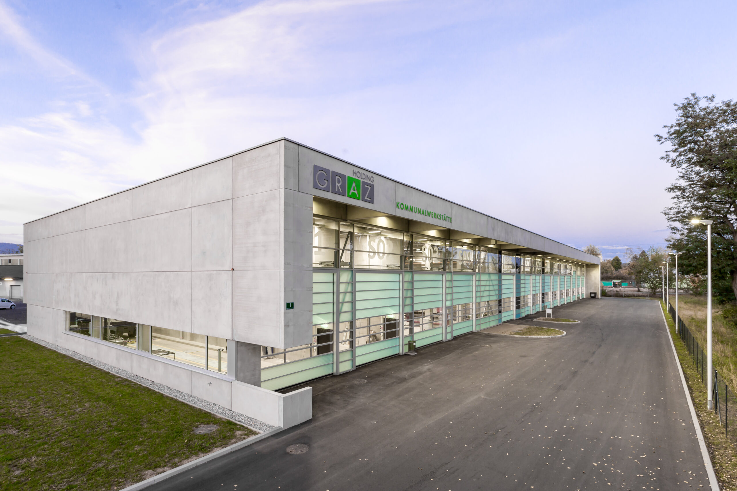Die Konstruktion aus Stahlbetonfertigteilen ermöglicht eine langlebige, robuste und zugleich flexible Nutzung. Reduzierte Materialvielfalt, sortenreine Trennbarkeit und der Verzicht auf aufwendige Beschichtungen unterstützen eine nachhaltige Bauweise. Als Werkstätte für alternative Antriebe ist das Gebäude zudem gezielt auf zukünftige Anforderungen ausgerichtet und verbindet funktionale Effizienz mit zeitgemäßer Baukultur.