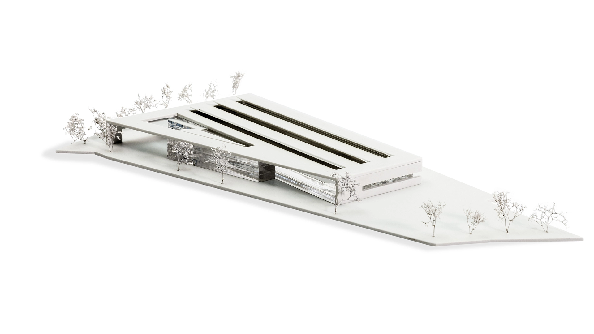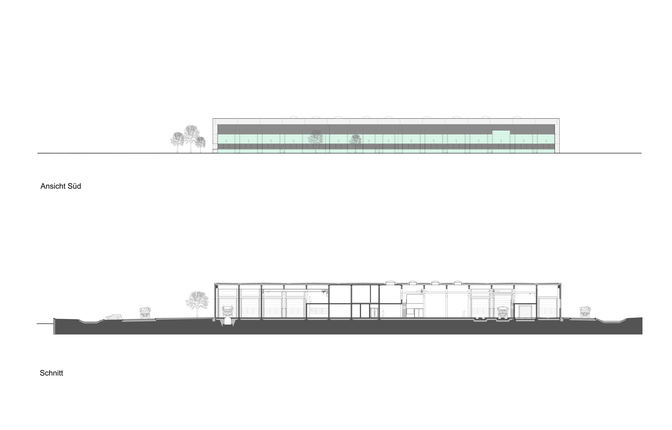 Der Entwurf reagiert auf die beengten Grundstücksverhältnisse mit einer klar organisierten, linearen Großform, die flexible Abläufe und zukünftige Anpassungen ermöglicht. Unter einem durchgehenden Dach entsteht eine zusammenhängende Werkstättenstruktur, ergänzt durch eine keilförmig vorgelagerte Zone, in der Verwaltung und Disposition als zentrale Anlaufstelle positioniert sind. Diese klare Mitte strukturiert das gesamte Areal und sorgt für eine intuitive Orientierung innerhalb der Betriebsabläufe.