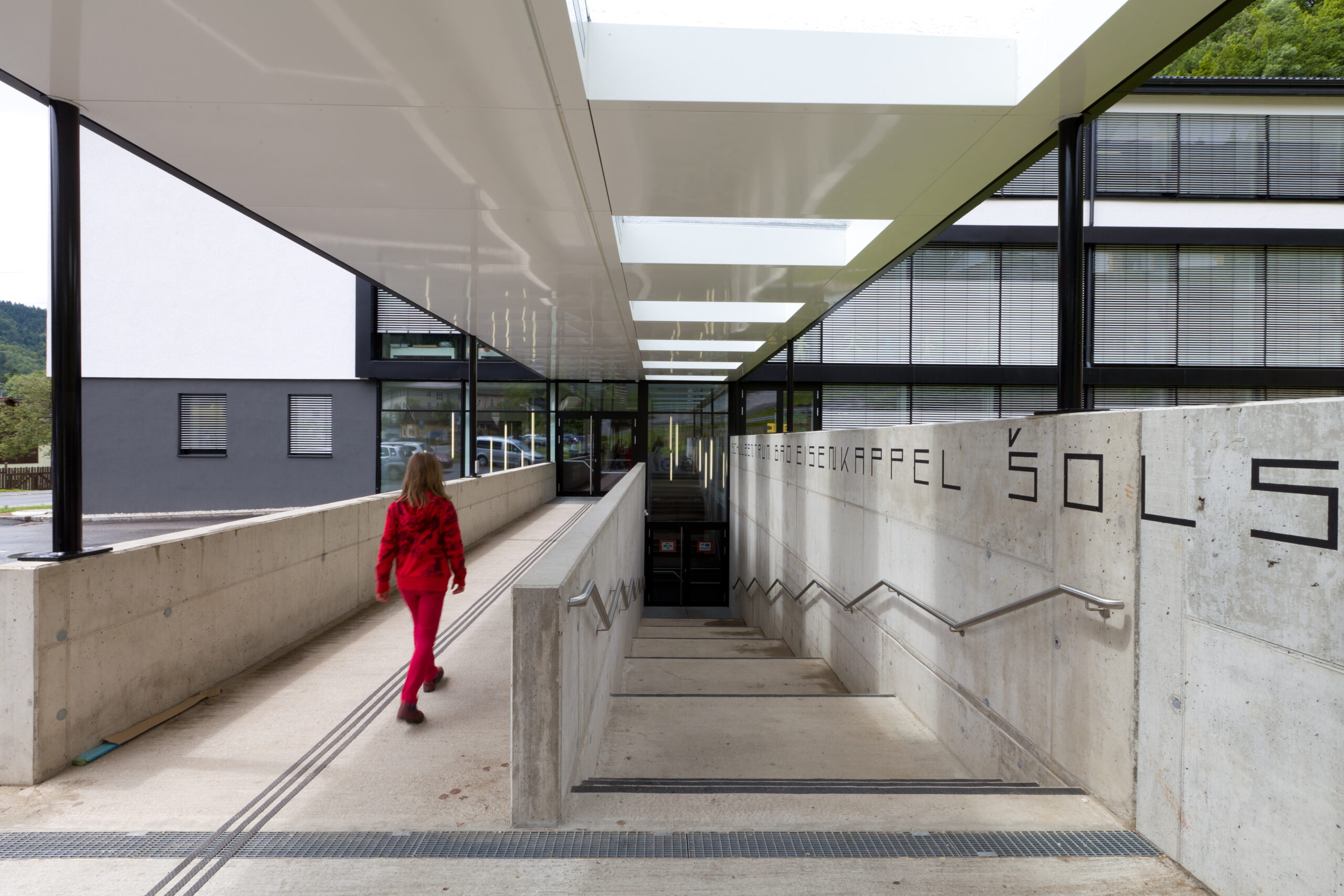 Die Außenbereiche wurden neu zugeordnet und attraktiv gestaltet, die Außensportflächen aufgewertet und die Zugänge der einzelnen Schultypen eigenständig und identitätsstiftend gestaltet. Das Bildungszentrum tritt somit als klar strukturierte, offene und funktionale Schule auf, die den Anforderungen der Gegenwart gerecht wird, aber auch flexibel für zukünftige Entwicklungen bleibt.