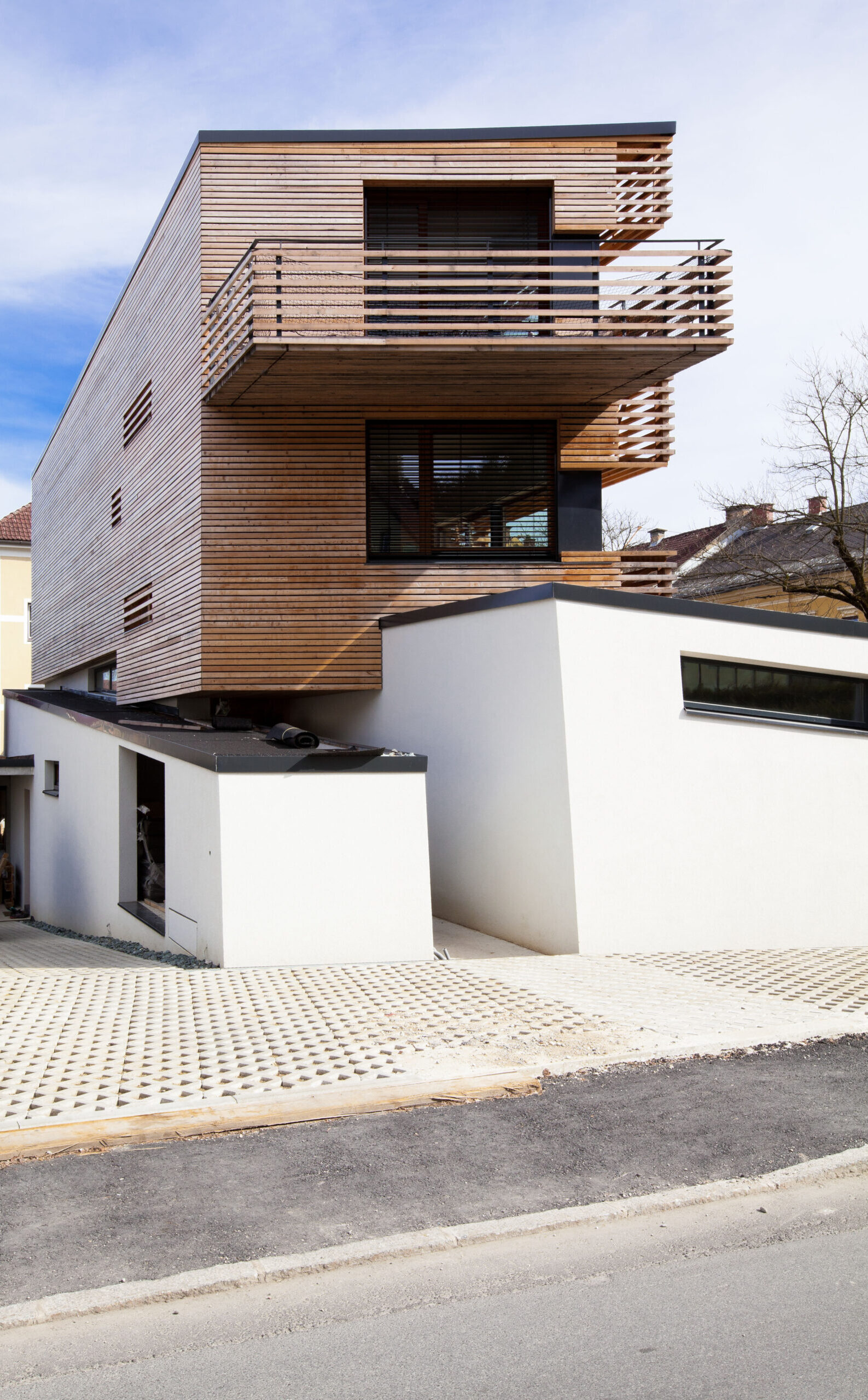 In einer stadtnahen Lage, eingebettet in eine grüne Umgebung, verfolgt der Entwurf das Ziel, die Erwartungen an ein Wohnhaus nicht nur zu erfüllen, sondern bewusst zu erweitern. Dabei steht weniger die bloße Positionierung im Vordergrund als vielmehr die Frage nach Ausrichtung, Erscheinungsbild und räumlicher Qualität. Während sich die Lage über die Setzung im Grundstück definiert und die Orientierung auf die Nutzung der Sonnenstände reagiert, wird das Erscheinungsbild als „dritte Haut“ verstanden – als Ausdruck der Bedürfnisse der Bewohner:innen, ihrer Ansprüche und ihres Umgangs mit Raum.