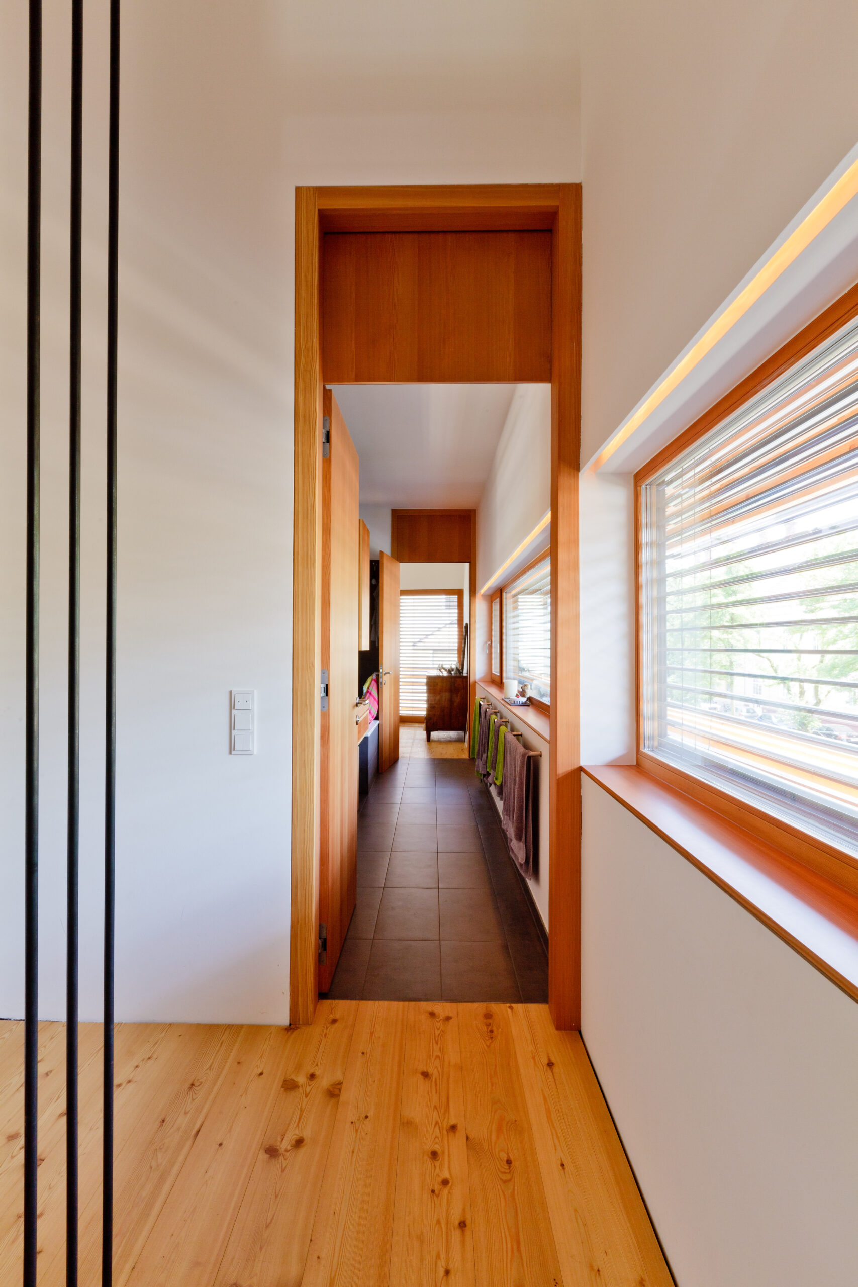 Besonderes Augenmerk liegt auf der Beziehung zwischen Innen- und Außenraum, insbesondere im Erdgeschoss. Hier wird eine direkte Zuordnung zum Garten hergestellt, die zugleich eine barrierefreie Nutzung ermöglicht und die alltägliche Wohnqualität nachhaltig prägt.